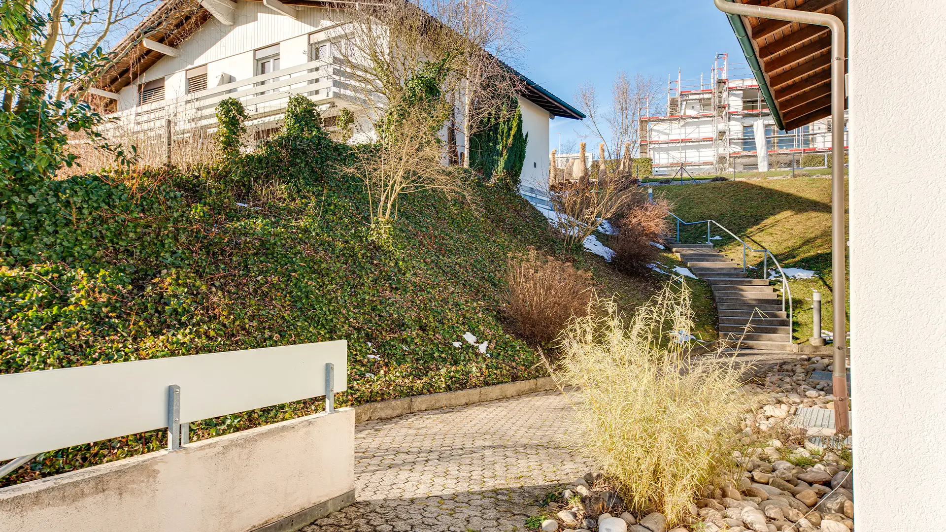 Das Reihen-Eckhaus in einem Mehrfamilienhaus mit total 3 Wohneinheiten liegt an leicht erhöhter Lage am Hügelzug Santenberg.