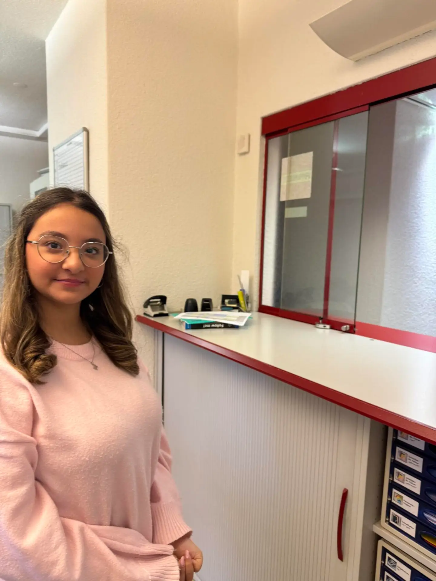 Maria hält Post, Telefon, Schalter und Kleider fürs Team im Griff. Sie wächst rein. Sie bleibt neugierig. Sie packt’s an.