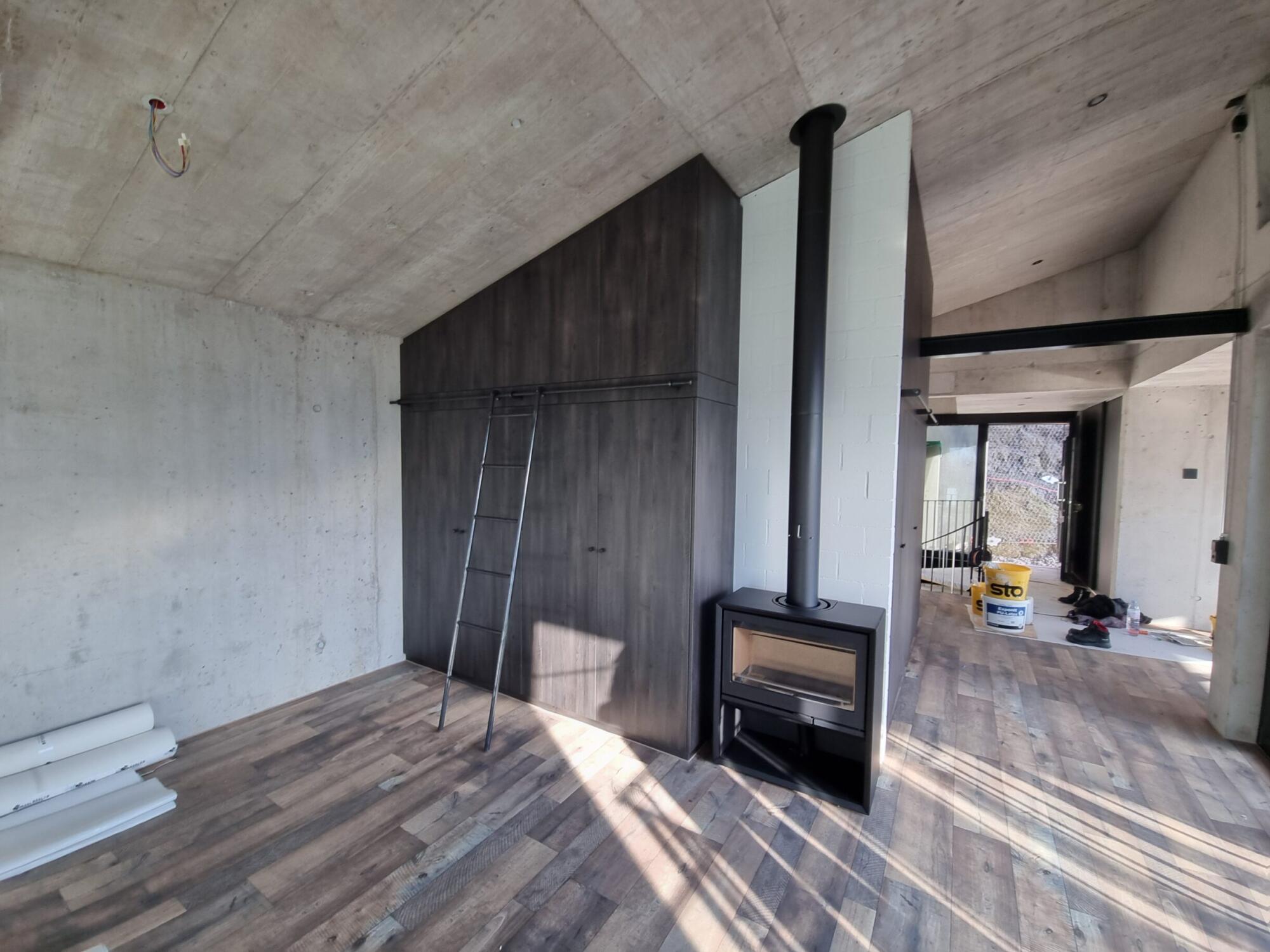Das Schrägdach in der obersten Etage führten wir in Beton aus.