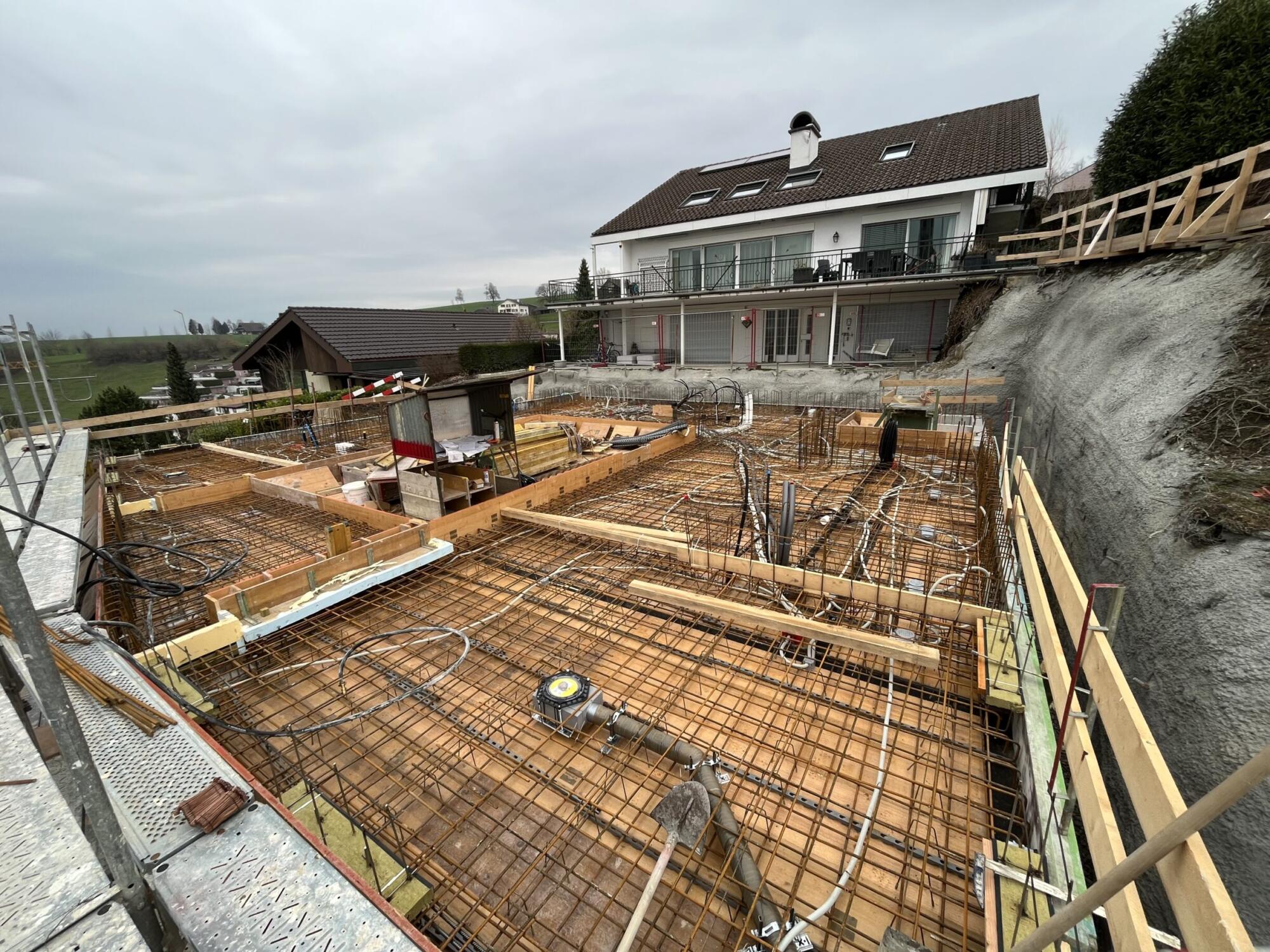 Ein Geschoss dient als Wellnessbereich mit einem von uns erstellten Betonpool.