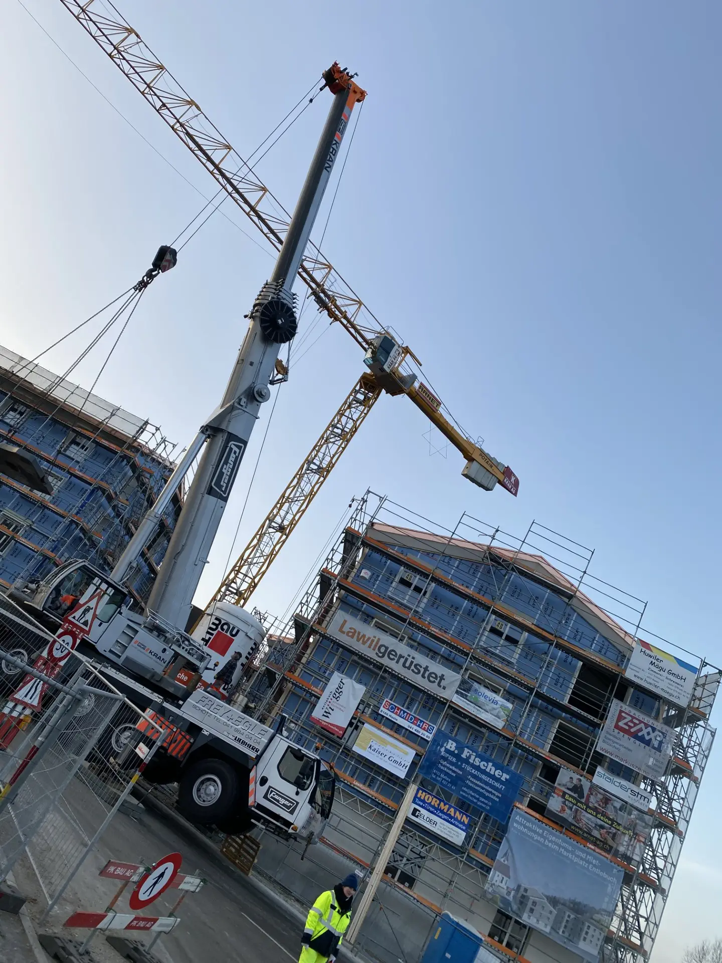 Die Bauarbeiten erfolgten unter engen Platzverhältnissen im Ortszentrum. Der laufende Schulbetrieb sowie Fussgängerverkehr erforderten eine temporäre Umleitung und sorgfältige Koordination mit den lokalen Behörden.