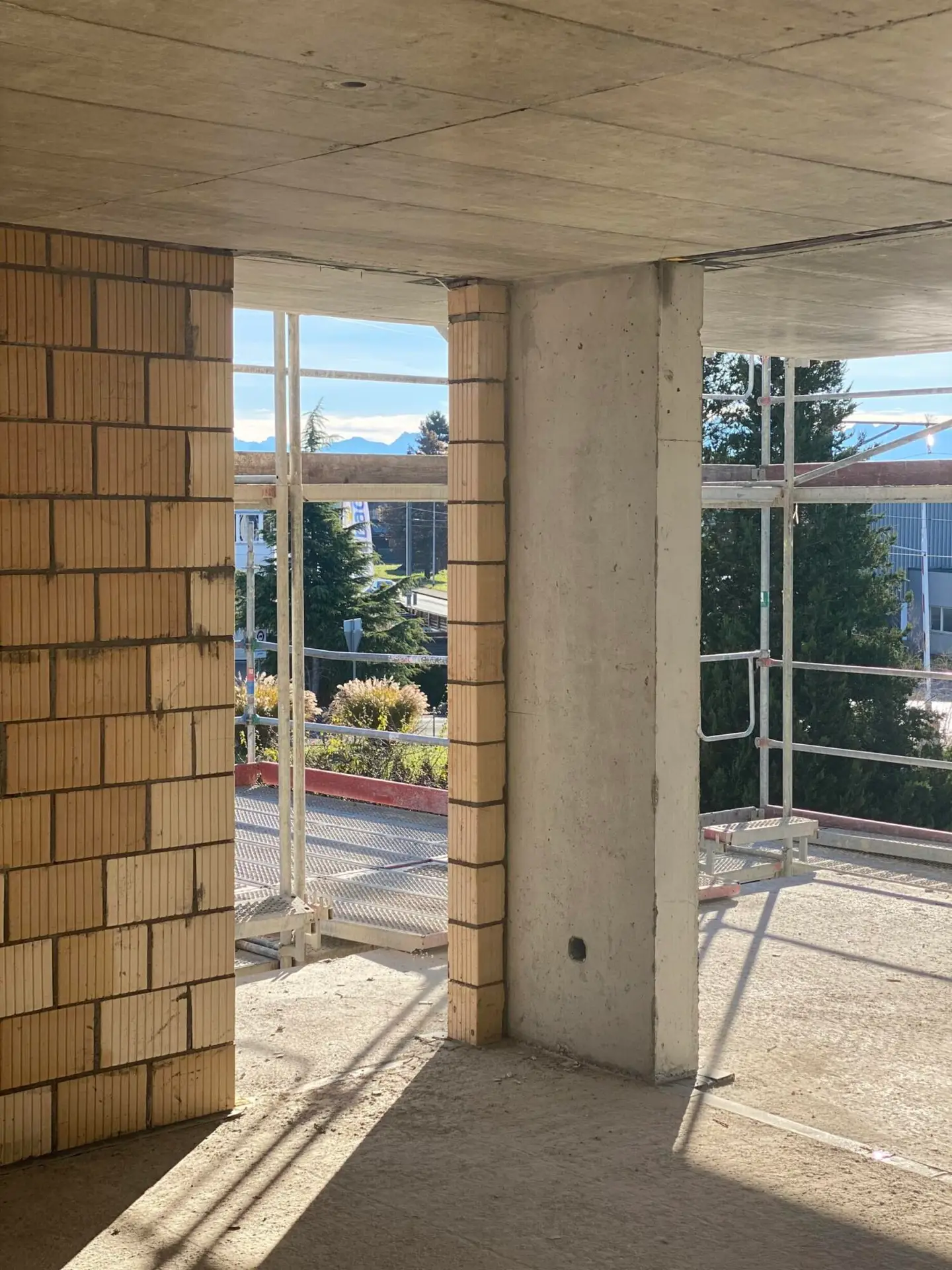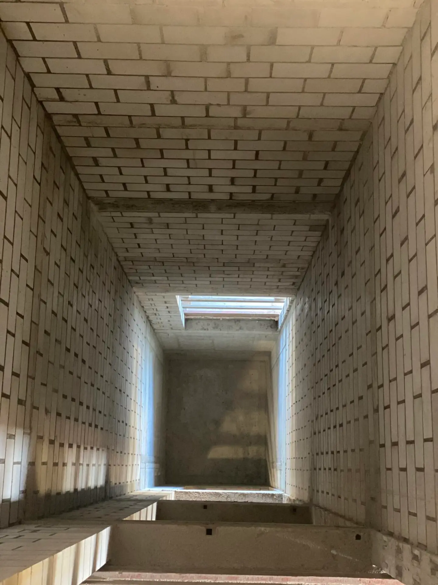 Das Treppenhaus wurde komplett vom restlichen Gebäude getrennt und mit einem Zweischalenmauerwerk ausgeführt.