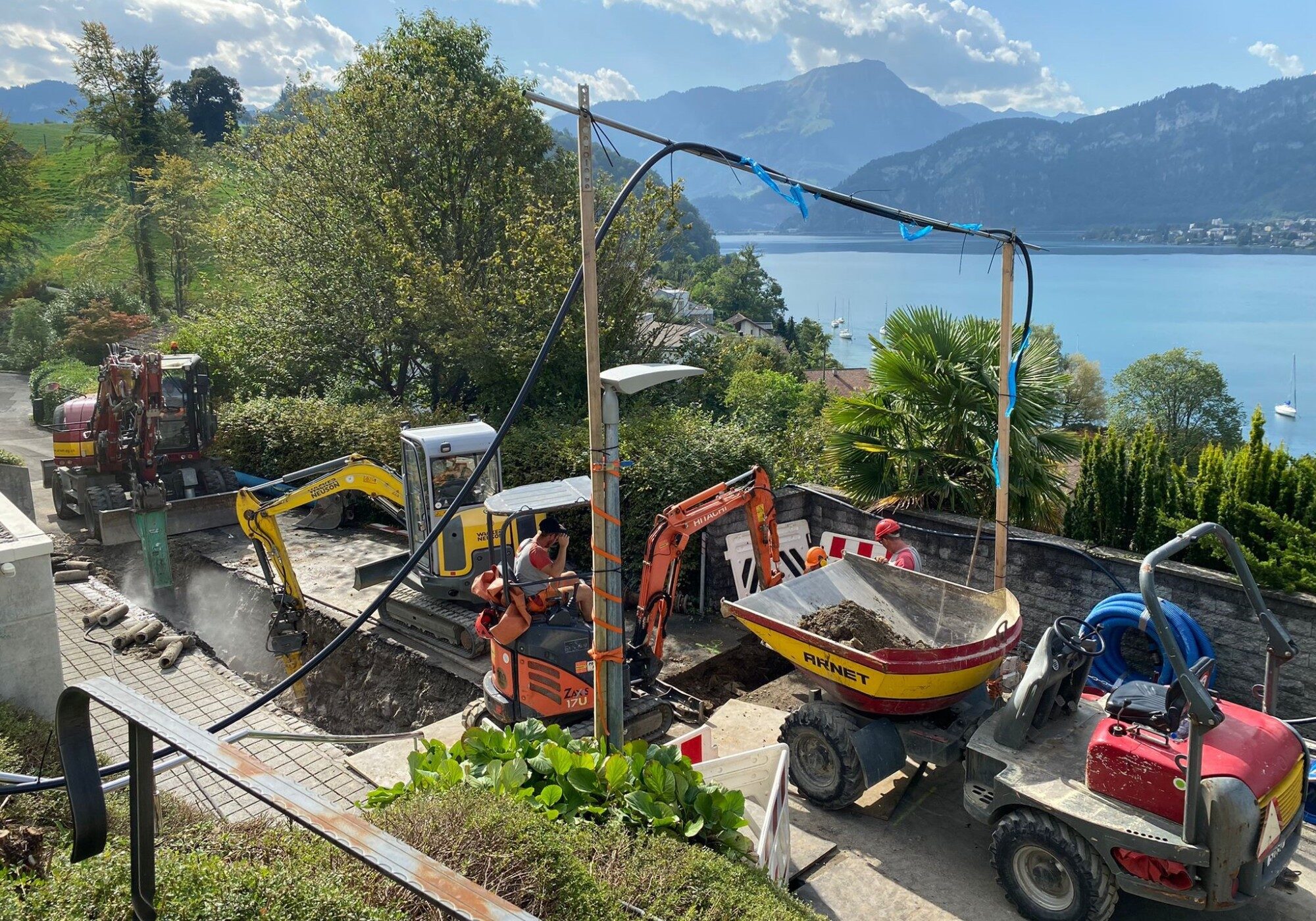Eine Baustelle mit beeindruckender Aussicht auf den See – Arbeiten an den schönsten Orten der Zentralschweiz.