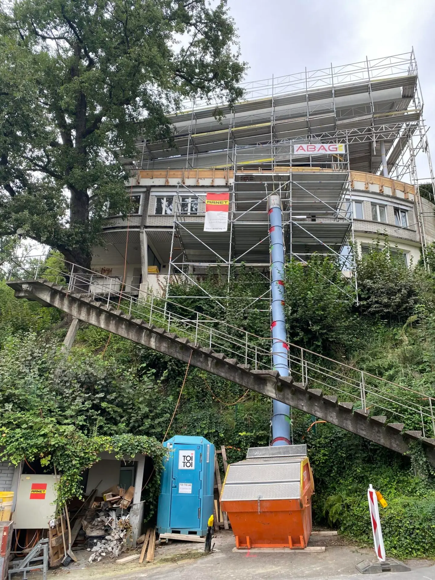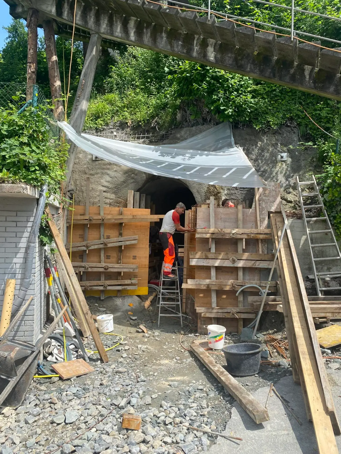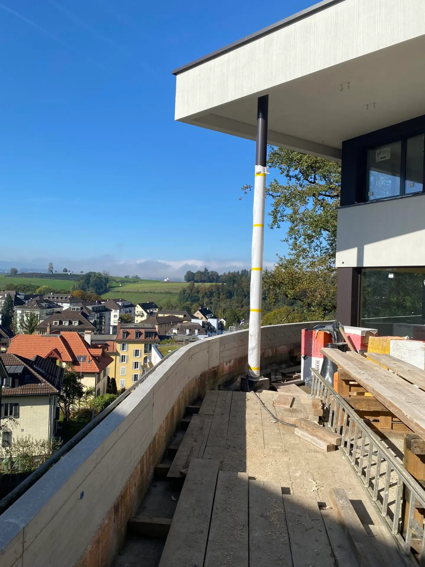 Bei diesem spannenden Projekt wurde eine Villa auf einem Unterbau durch eine Fremdfirma zurückgebaut. Der komplette Unterbau blieb in seinem heutigen Zustand erhalten, wurde durch einen Liftschacht in einen Zugangsstollen und Erdbebenverstärkungen ergänzt. Somit durfte kein Wasser in die unteren Stockwerke eindringen. Für das neue Einfamilienhaus haben wir die Erbebenwände und den Liftschacht für zwei Stockwerke auf eine Höhe von ca. 7m erstellt.