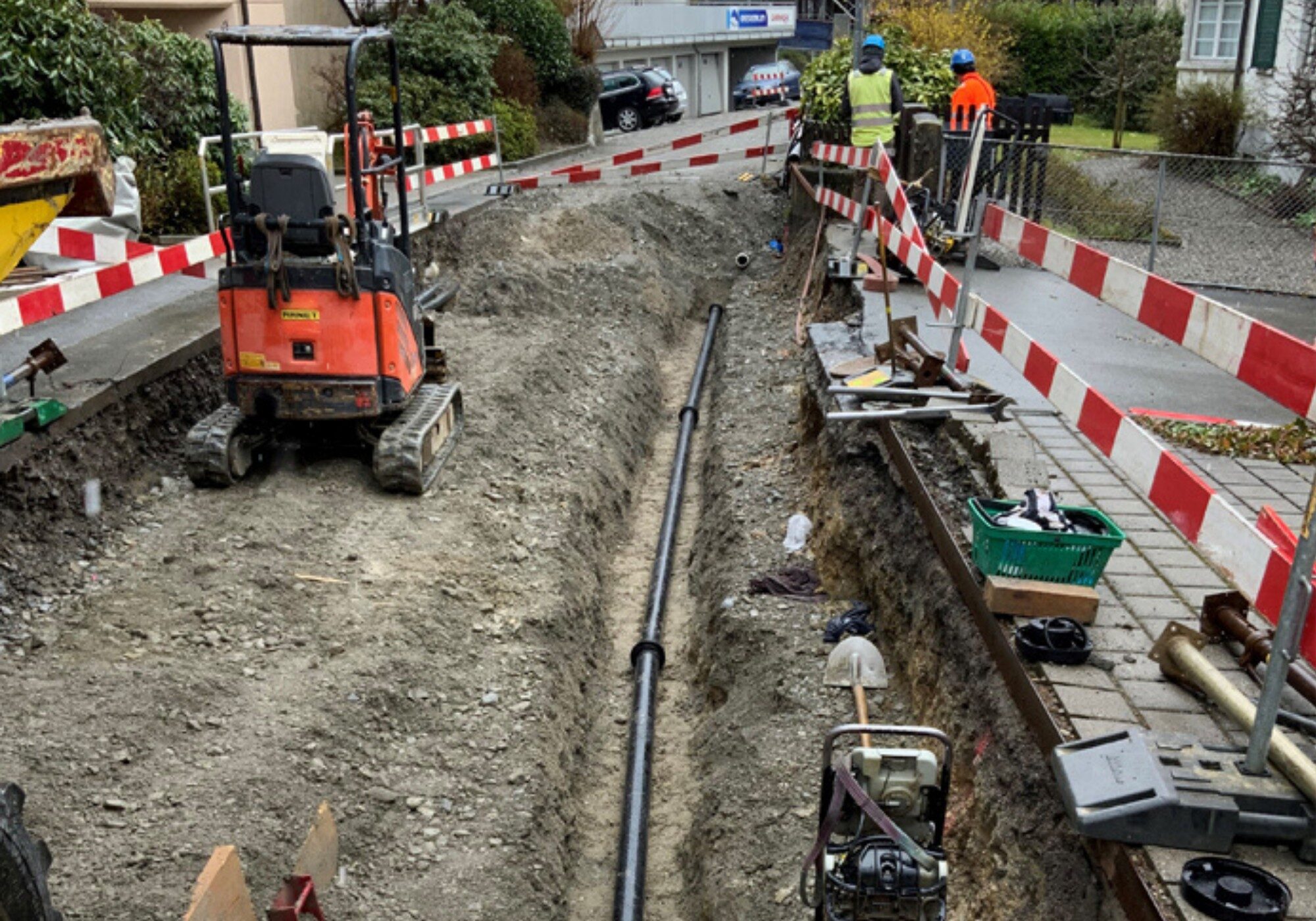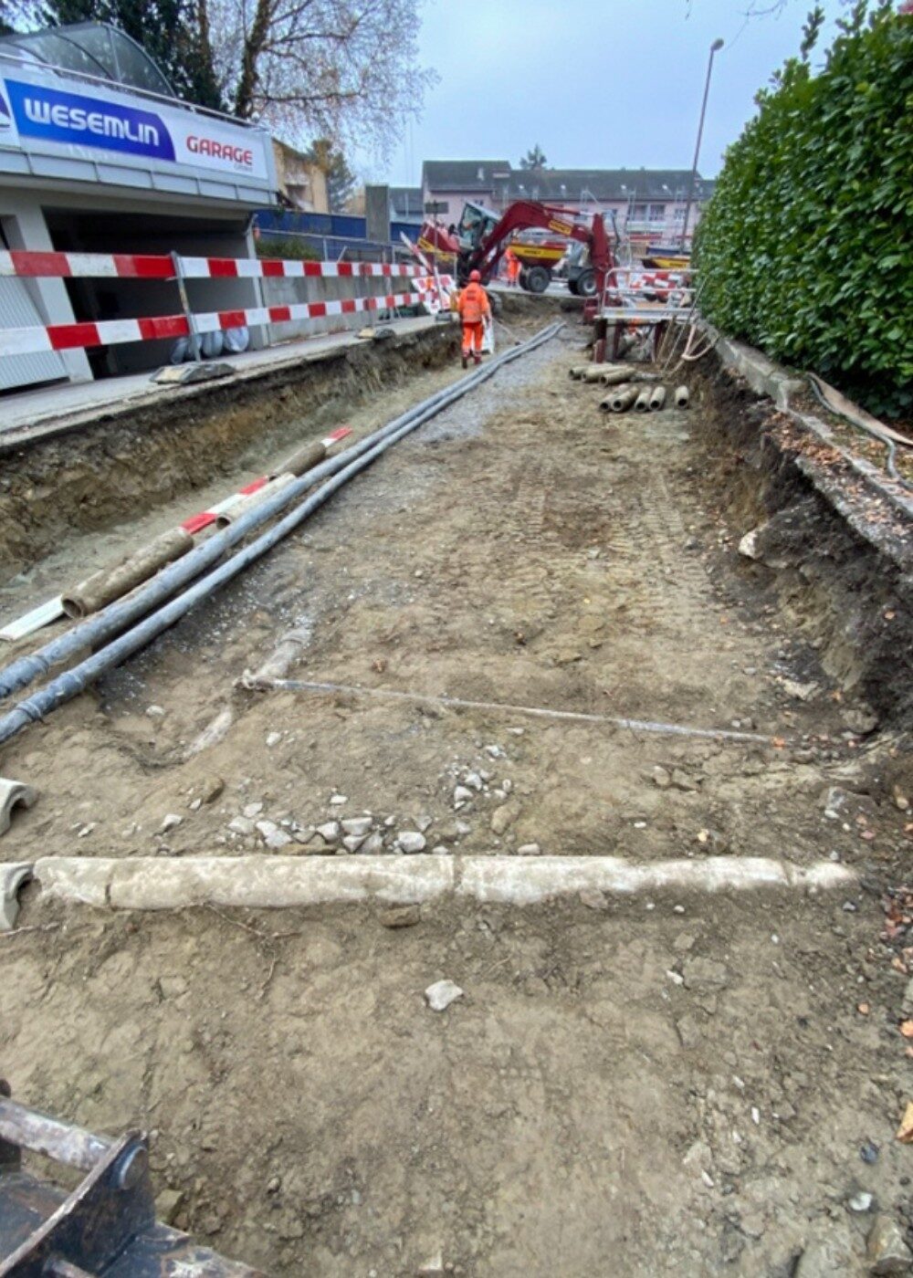Das Projekt wurde unter engen Platzverhältnissen realisiert, wobei die Zugänglichkeit für Anwohner zu jedem Zeitpunkt sichergestellt werden musste. Die Arbeiten erfolgten etappenweise, mit besonderem Augenmerk auf die Koordination von Werkleitungen, sowie der Ver- und Entsorgungsleitungen bis Ø PP DN 300.