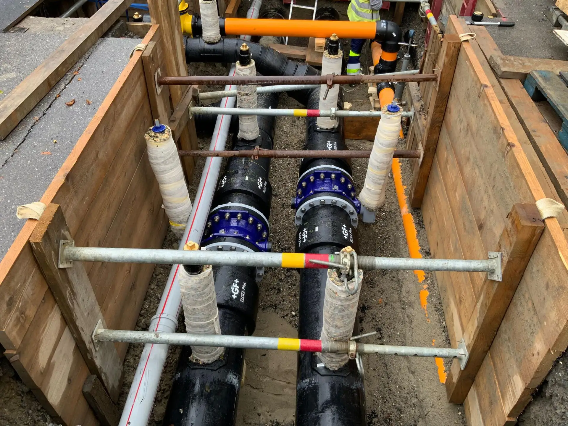 Ausführung von Tiefbauarbeiten im Gebiet Tribschen unter anspruchsvollen geologischen Bedingungen. Die Bauarbeiten erfolgten im Grundwasserbereich und umfassten herausfordernde Querungen mit grossen Spannweiten in Breite und Länge. Der Anschluss an eine zentrale Energieversorgungsanlage erfolgte mittels Kernbohrungen mit einem Durchmesser von Ø400 mm im Grundwasserbereich.