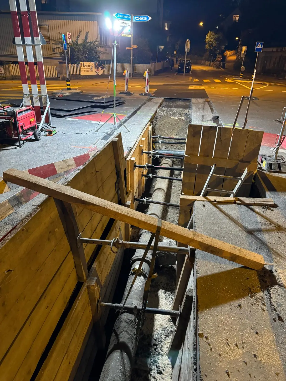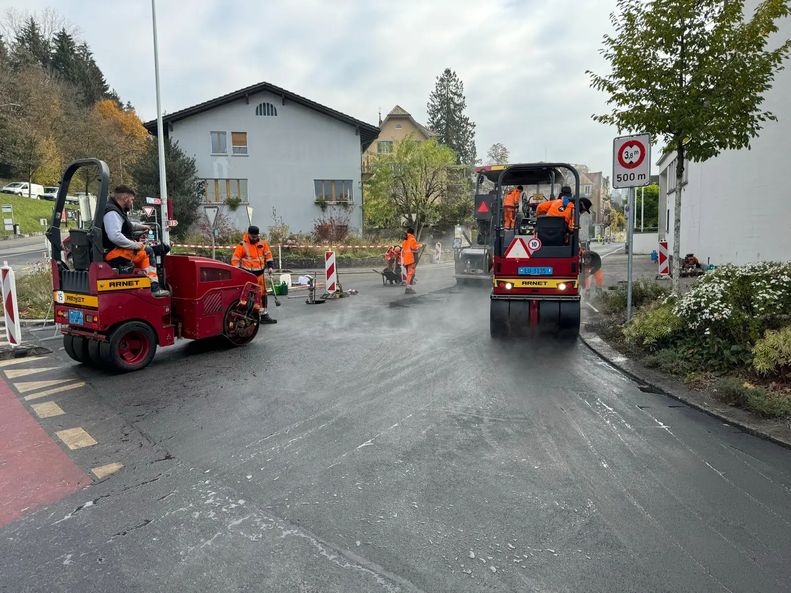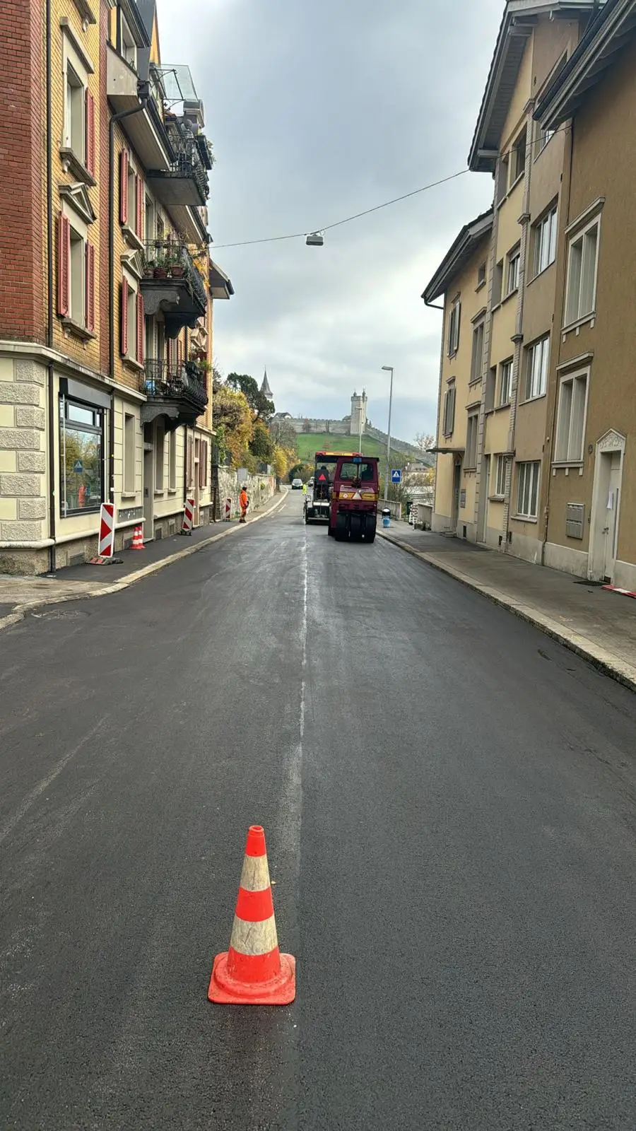 Wir haben das Gas- und Wassernetz sowie diverse Entwässerungsleitungen und Schachtabdeckungen in der St. Karlistrasse ersetzt. Zusätzlich entsiegelten wir Flächen und ersetzten den Asphalt durch einen Ökostein mit 3 cm breiten Fugen. So versickert Oberflächenwasser direkt vor Ort und entlastet das Leitungssystem bei Starkregen. Zum Schluss frästen wir die Deckbeläge ab und erneuerten sie.