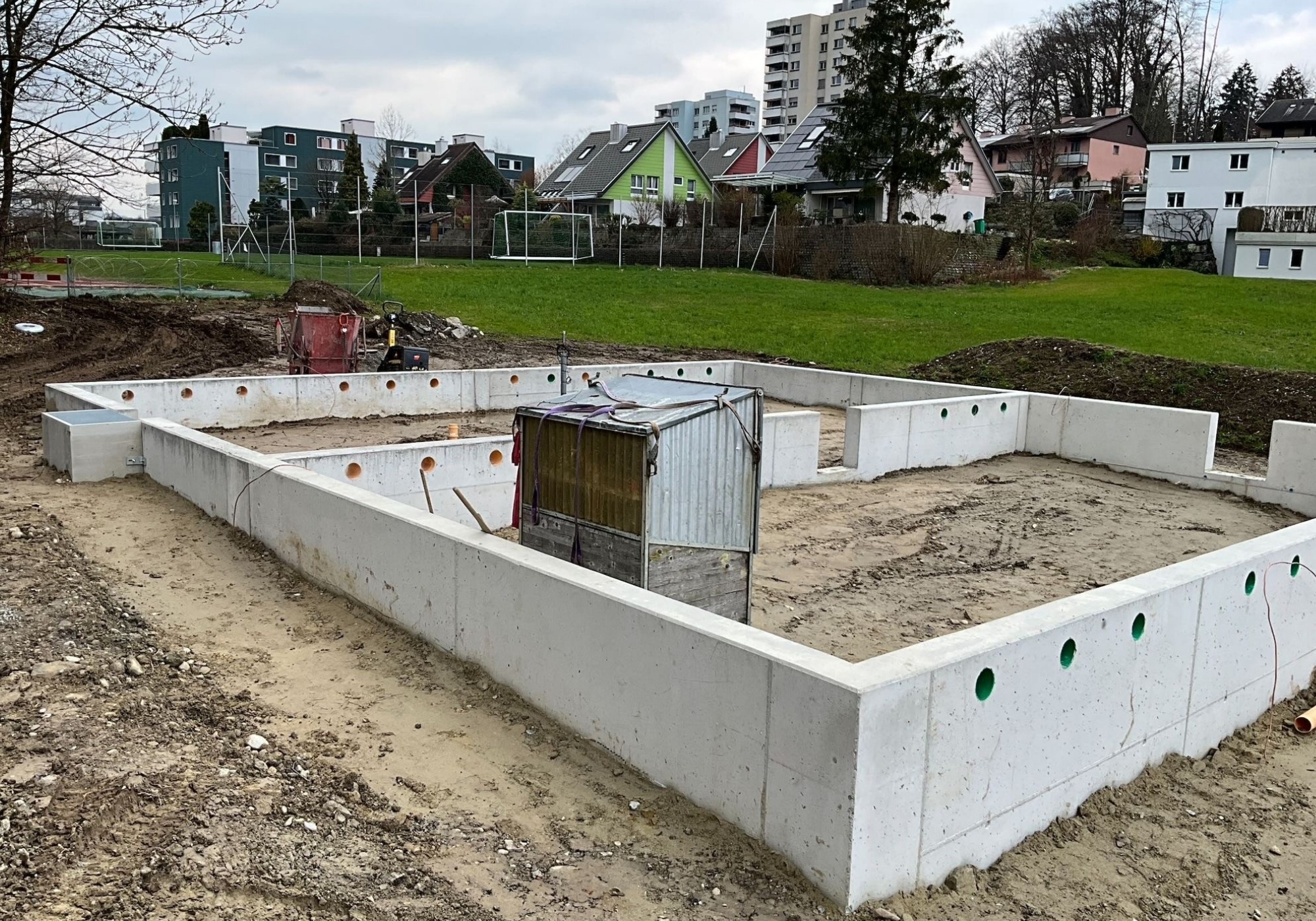 Aufgrund steigender Schülerzahlen und laufender Bauplanungen wurde ein temporäres Schulhaus errichtet. Die Bauherrschaft entschied sich für eine modulare Bauweise, um innert kurzer Zeit funktionale Schulräume zur Verfügung zu stellen. Das provisorische Gebäude wurde in Zusammenarbeit mit spezialisierten Modulbau-Anbietern umgesetzt und umfasst mehrere Unterrichtsräume, Nebenräume sowie sanitäre Anlagen.