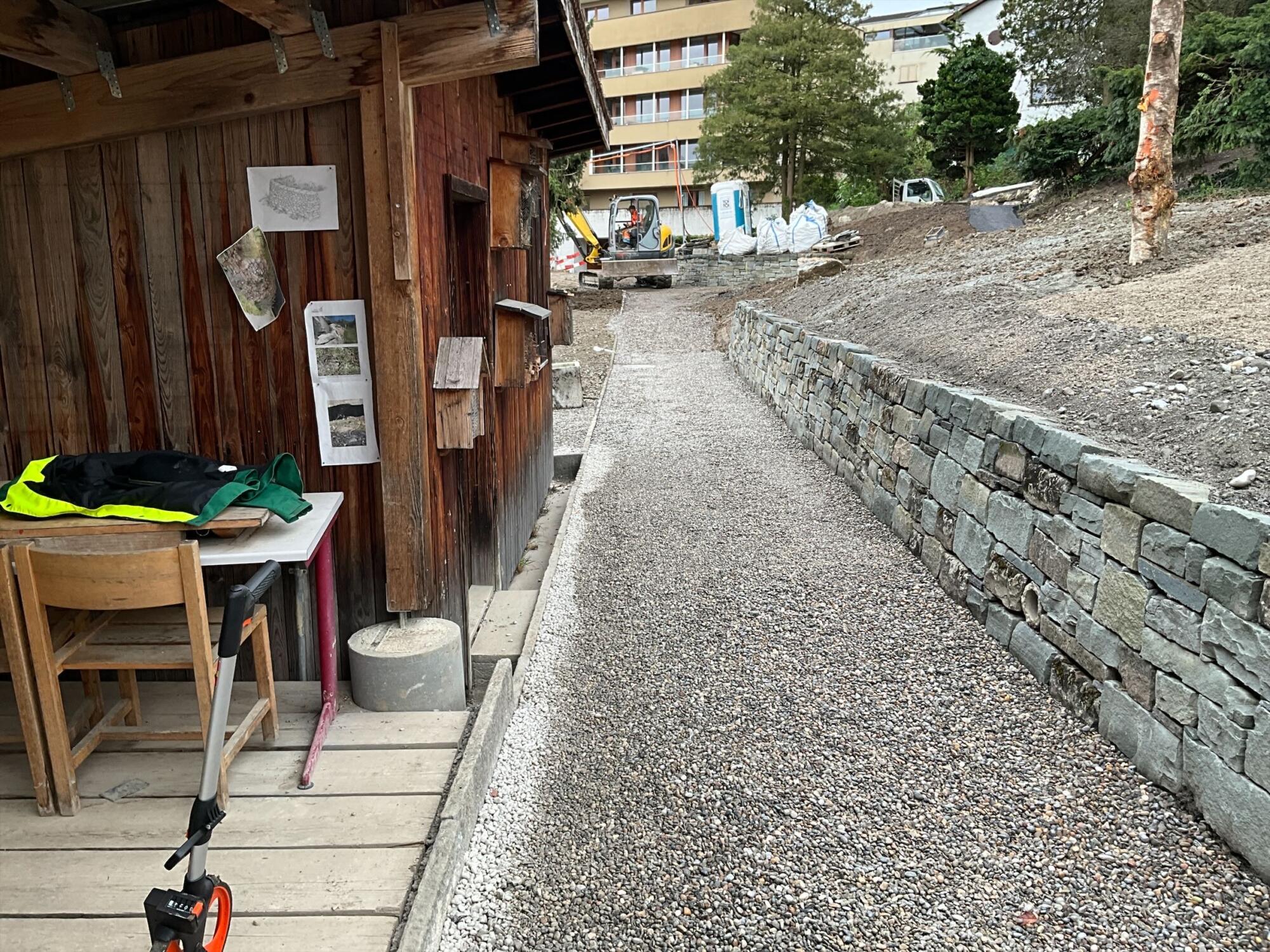 Zu unseren Leistungen gehörten die Erdarbeiten und Flächenvorbereitungen, die Herstellung unterschiedlicher Mauertypen (u.a. Trockenmauern, Natursteinmauern und Sichtmauern) sowie die baubegleitende Unterstützung bei der späteren Bepflanzung. Das Projekt wurde in enger Zusammenarbeit mit Landschaftsarchitekten und Fachstellen umgesetzt und konnte termin- und qualitätsgerecht abgeschlossen werden. Es dient heute als öffentlich zugänglicher Schaugarten und Beispiel für ökologisch wertvolles Bauen im Garten- und Landschaftsbau.