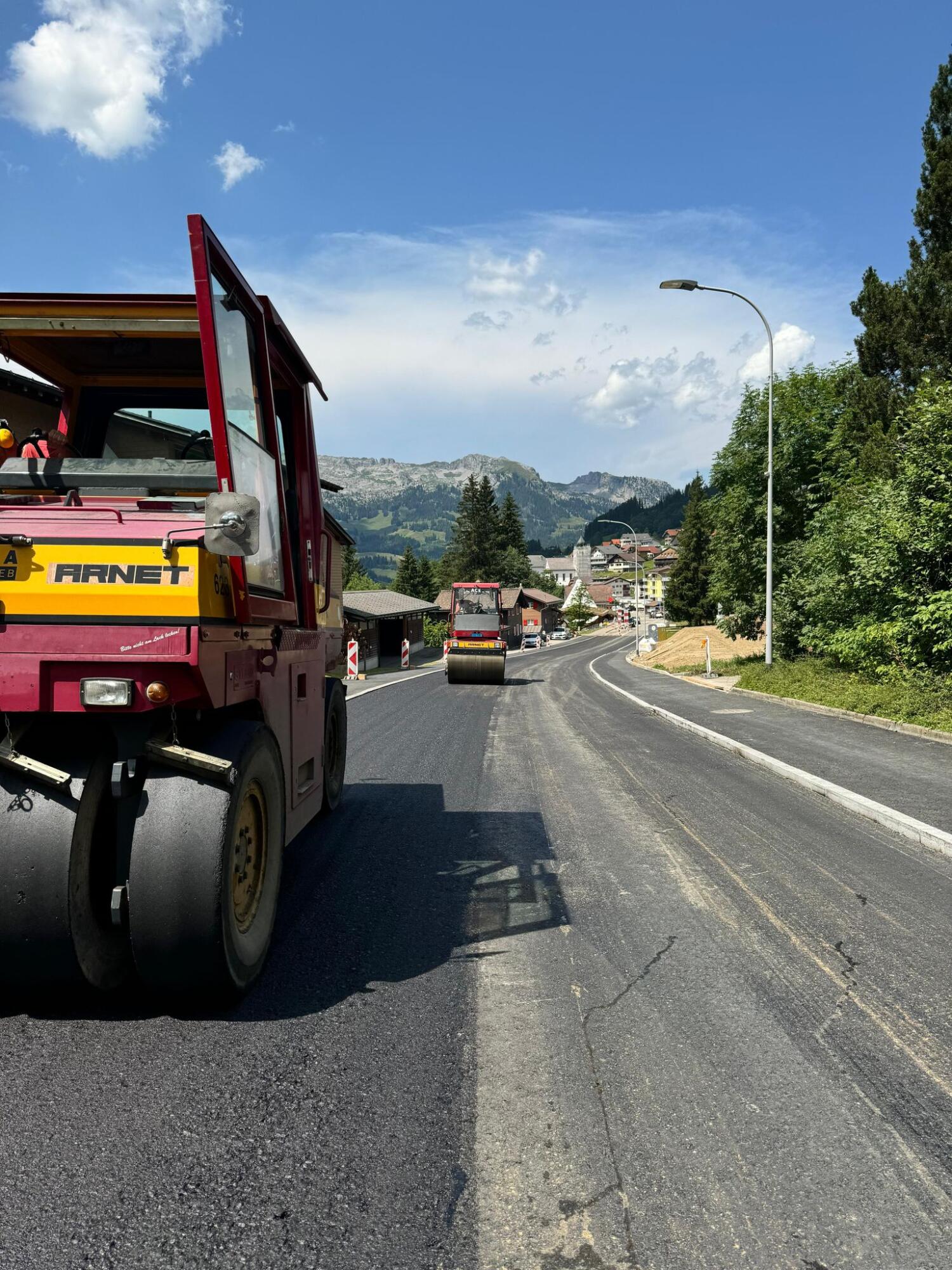 Diese Strassensanierung umfasste den Ersatz von rund 20’000 m² Belag inklusive Trag-, Binder- und Deckschicht – insgesamt über 4’500 Tonnen Einbauleistung. Die Arbeiten erstreckten sich über etwa 4’500 m Strassenränder und wurden unter laufendem Verkehr präzise koordiniert.