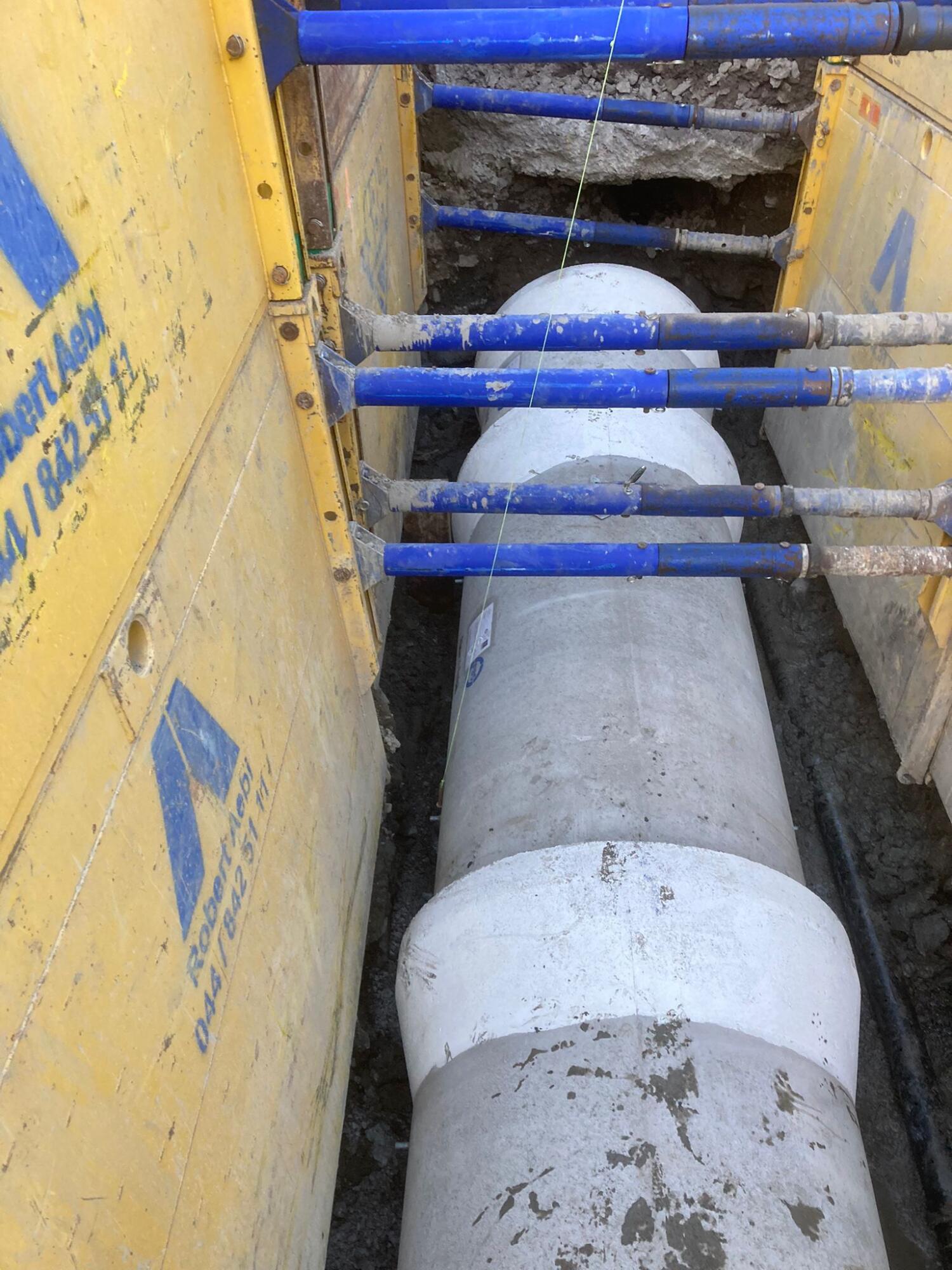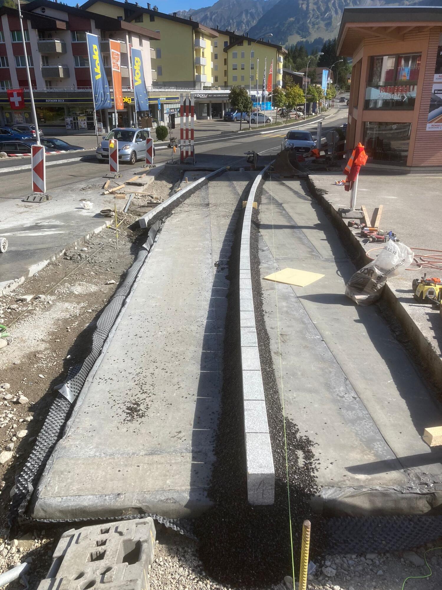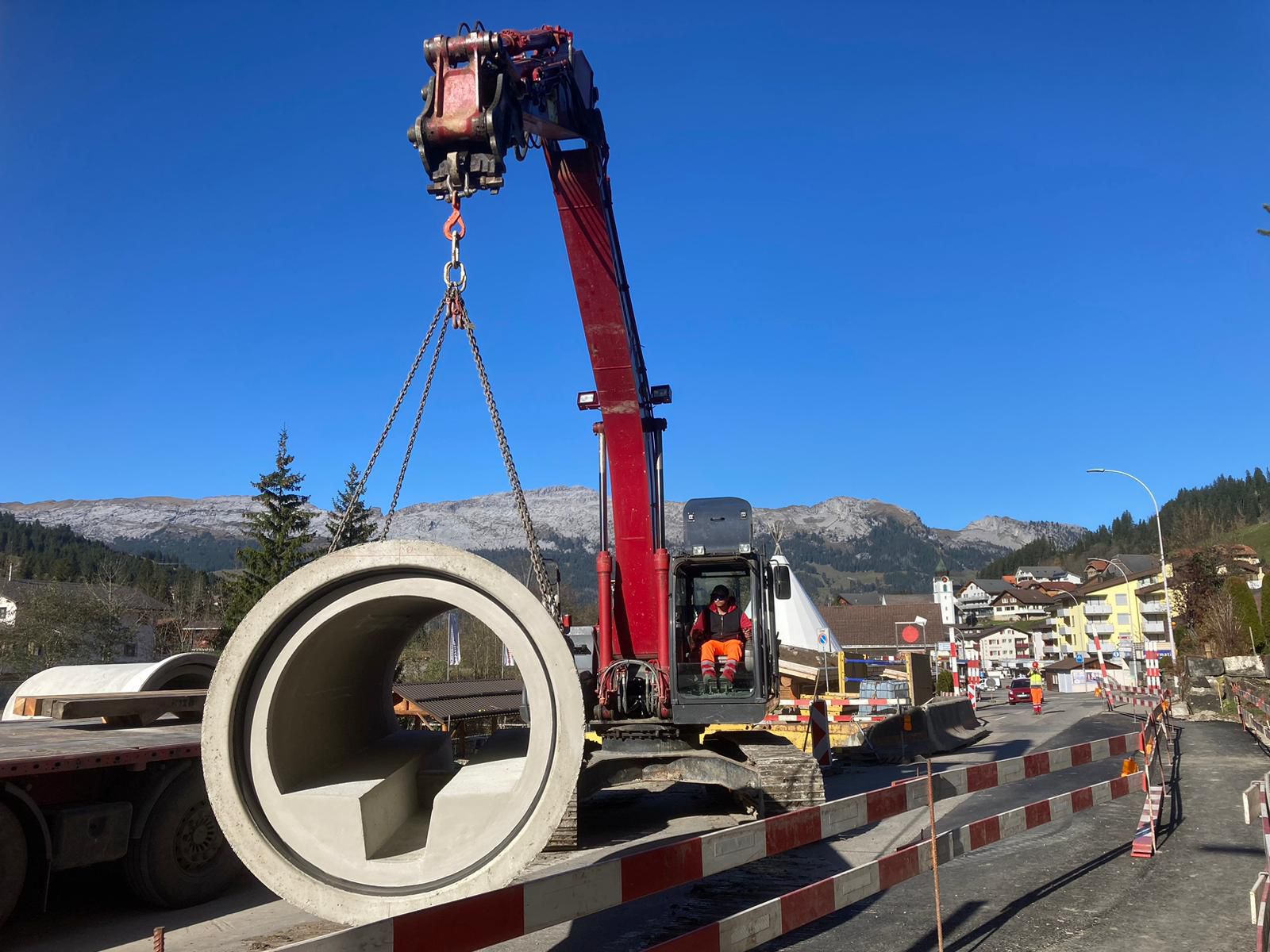 Parallel dazu realisierten wir eine neue Wasserleitung auf 600 m Länge und den Lauibachdurchlass mit rund 4 m Tiefe – sicher und termingerecht.